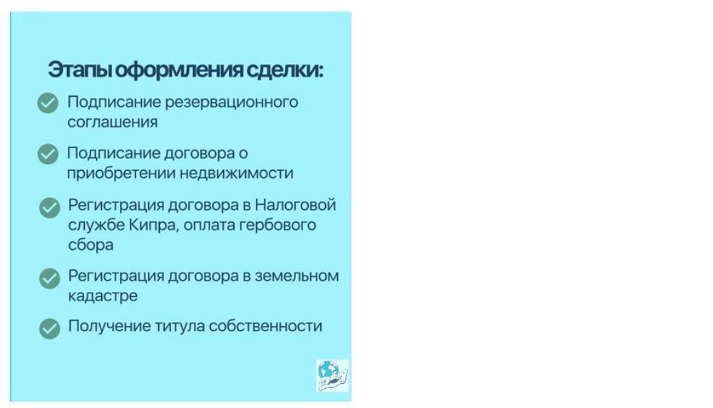 При проведении сделки купли-продажи недвижимости на Кипре важную роль играют финансовые и договорные документы. Ключевым документом является контракт купли-продажи (Agreement for Sale), в котором подробно прописываются условия сделки, права и обязанности сторон.